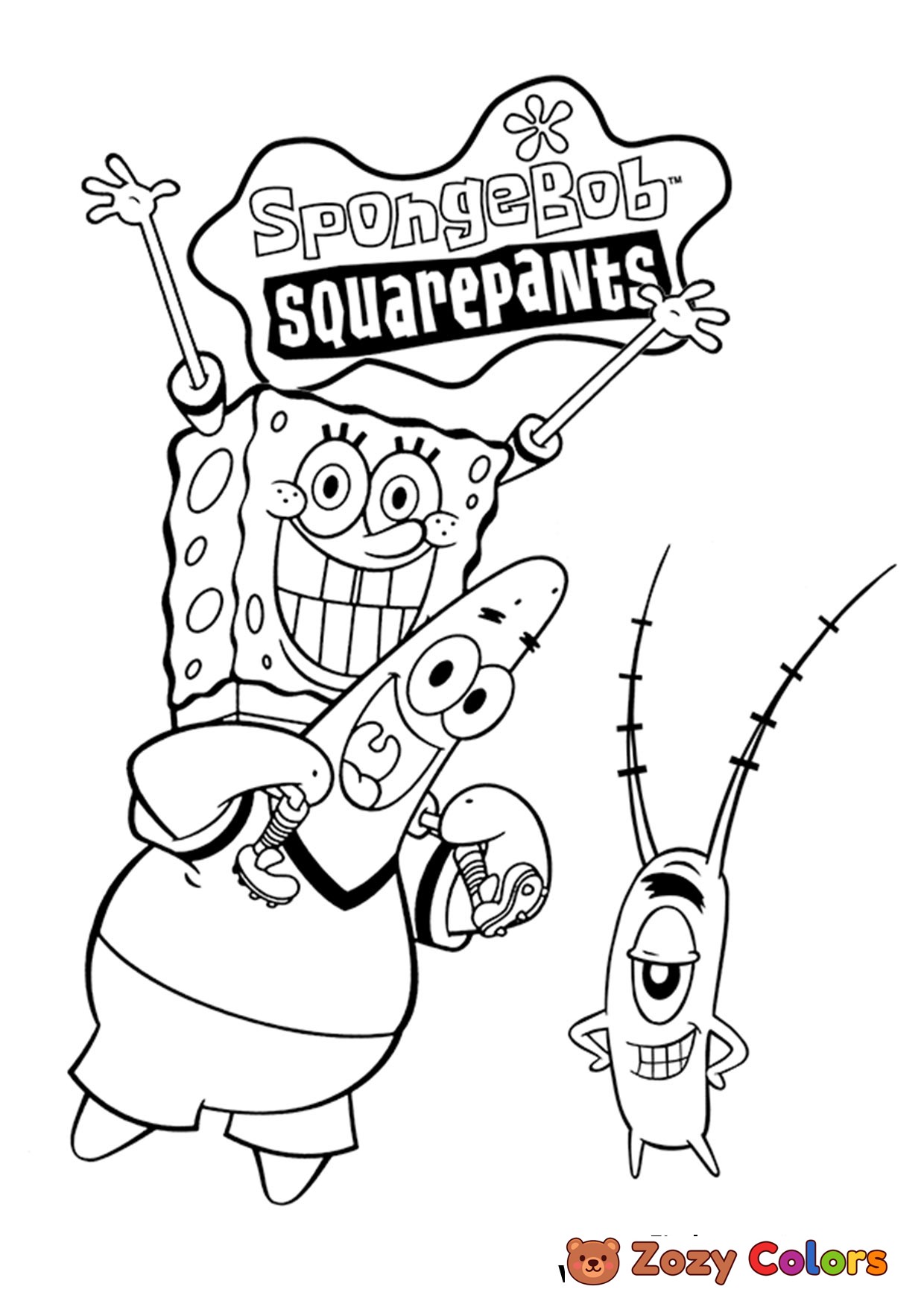 SpongeBob, Patrick and Plankton having fun - Coloring page to print or download and color.