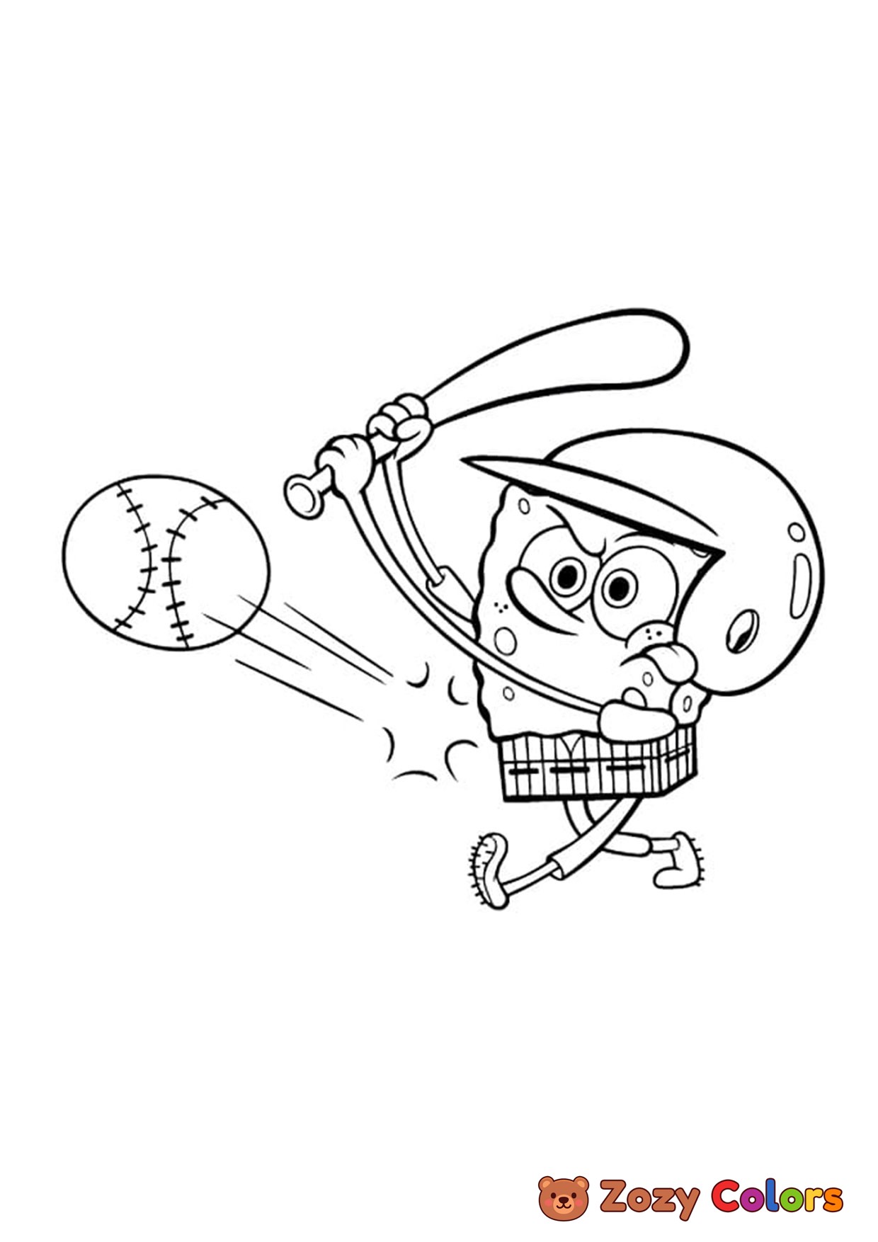 Spongebob playing baseball. Coloring page to print or download and color for your kids.