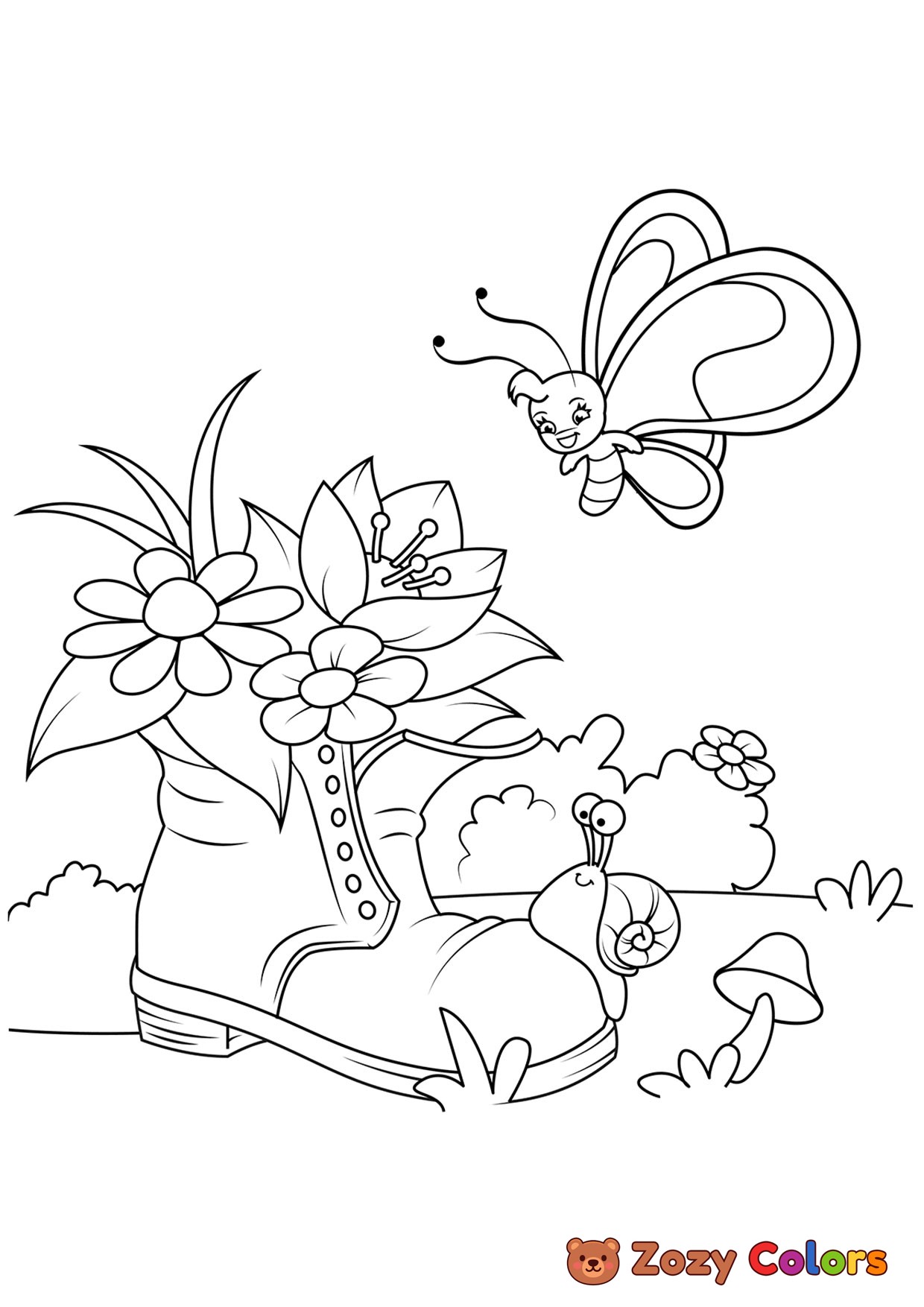 Spring animals and flowers. Coloring page to print or download and color for your kids.
