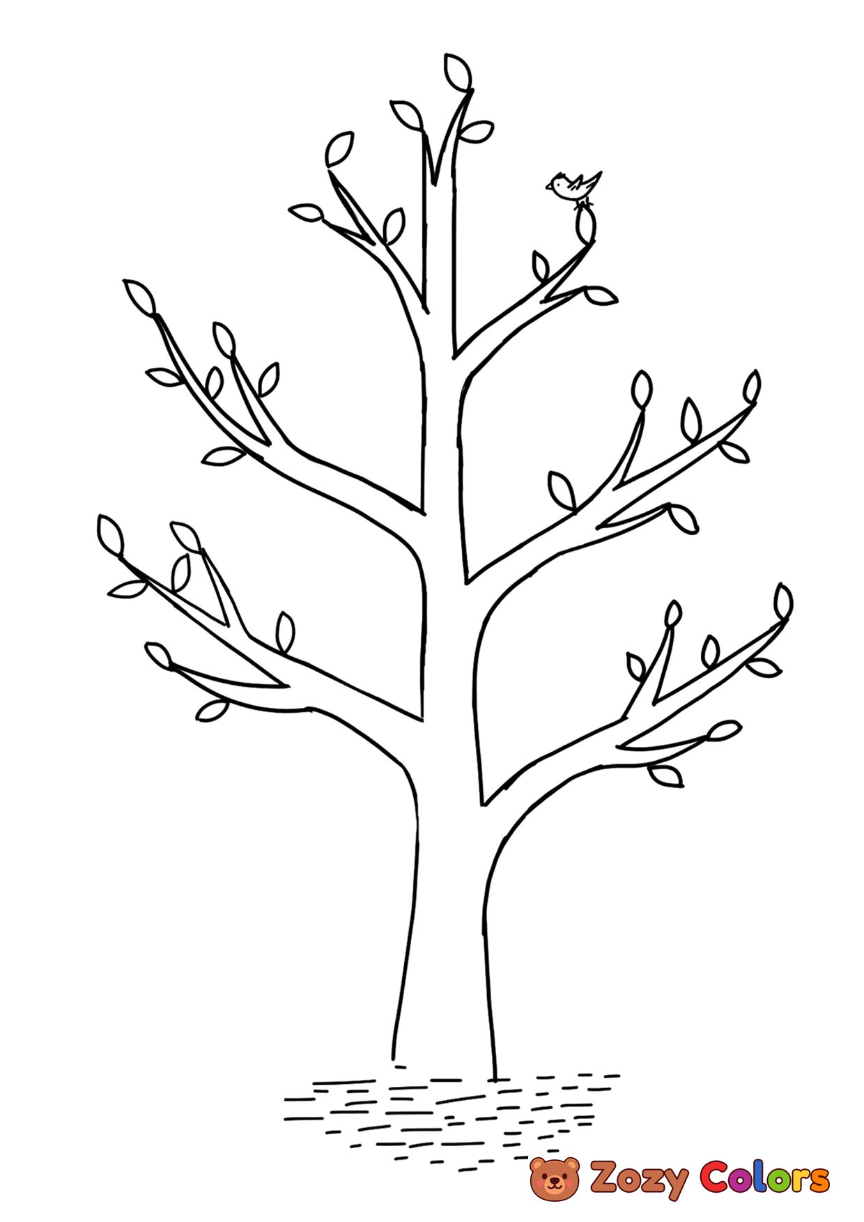 Spring tree starting to bloom. Coloring page to print or download and color for your kids.
