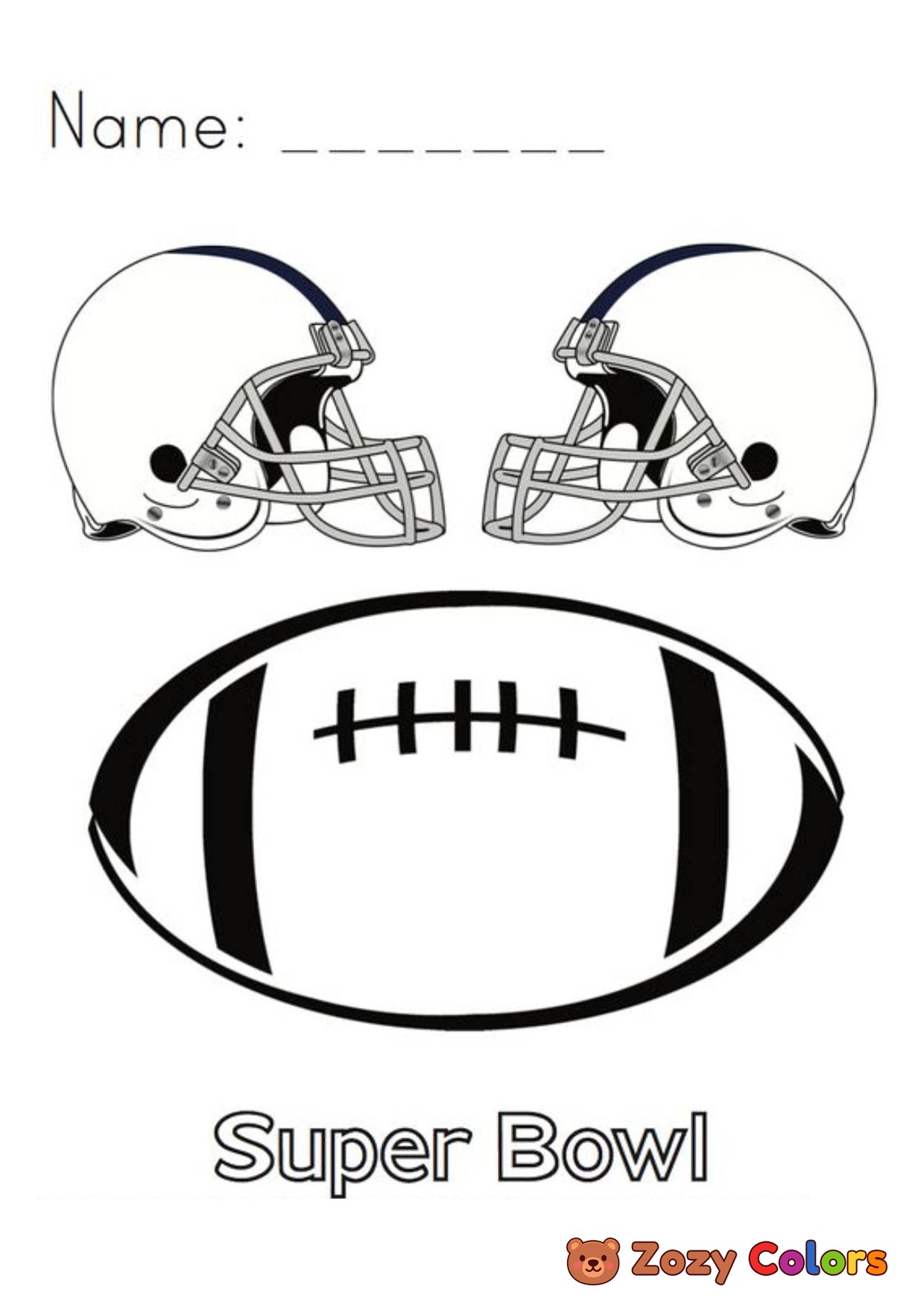 Super bowl helmets and football. Coloring page to print or download and color for your kids.