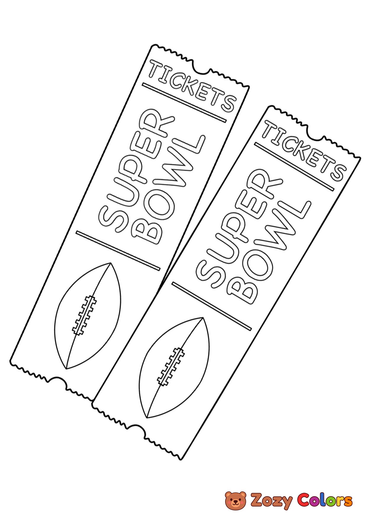 Super bowl tickets. Coloring page to print or download and color for your kids.