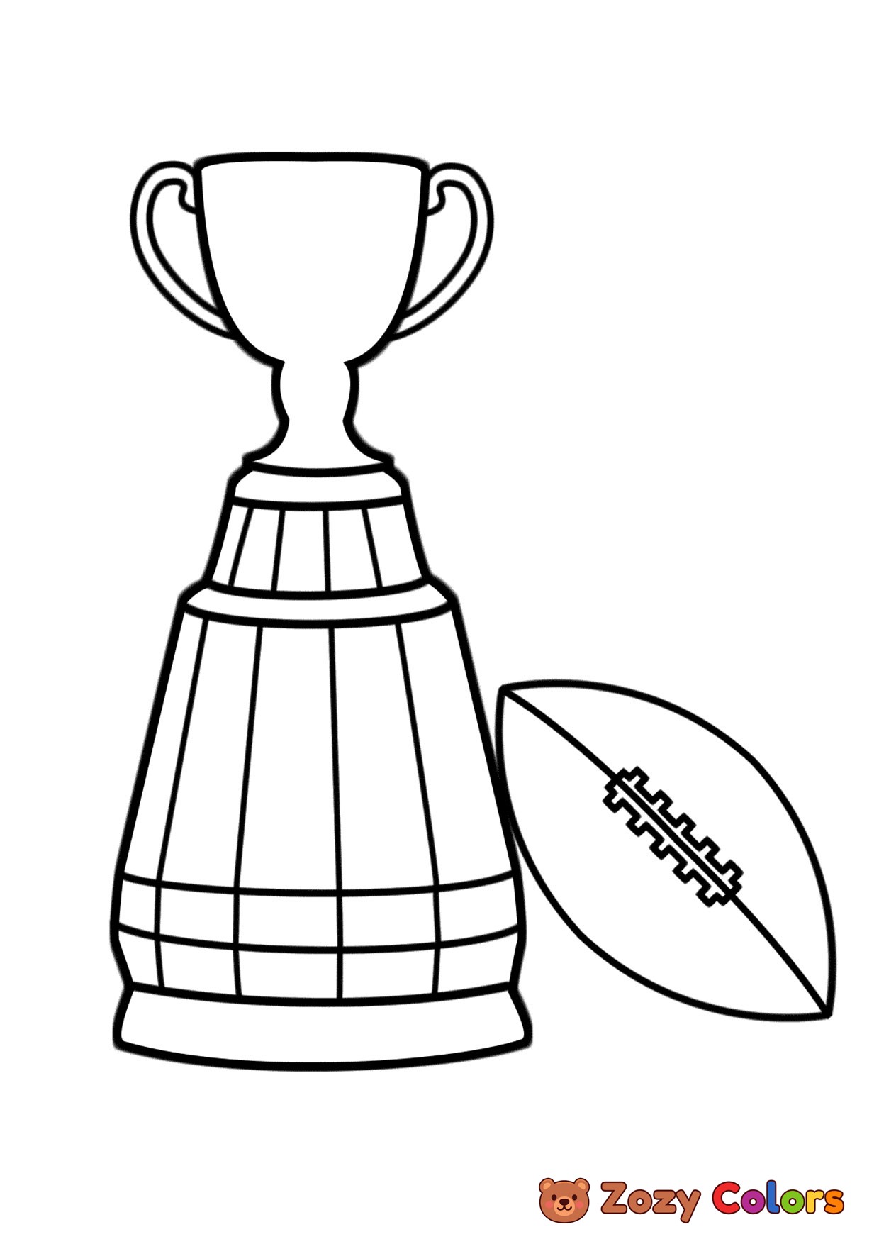 Super bowl trophy and football. Coloring page to print or download and color for your kids.