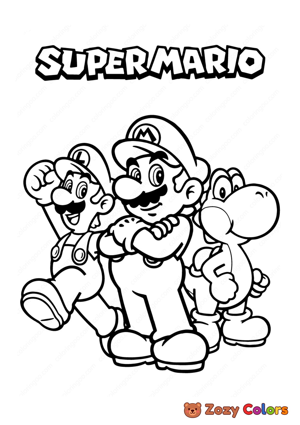 Super Mario poster. Coloring page to print or download and color for your kids.