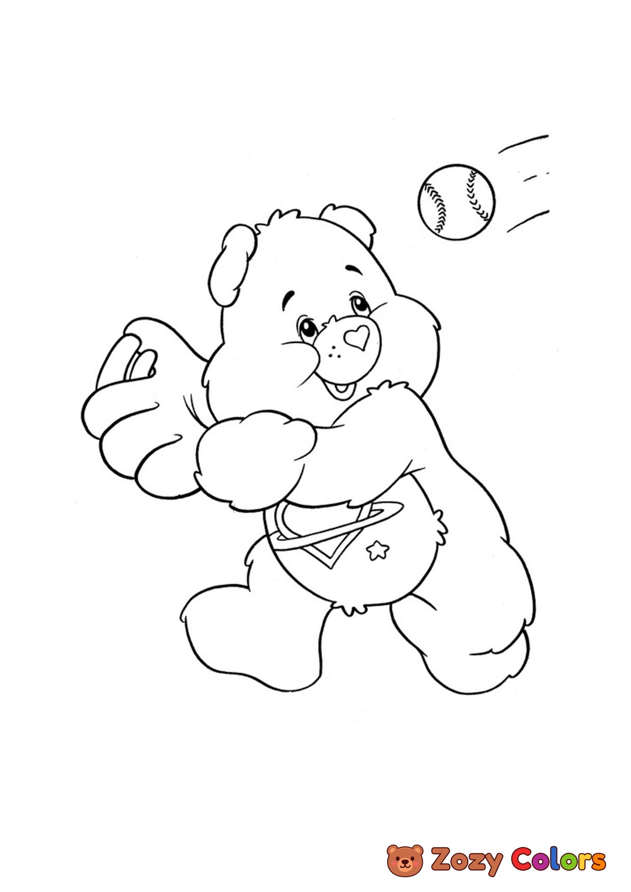 Teddy bear playing catch. Coloring page to print or download and color for your kids.