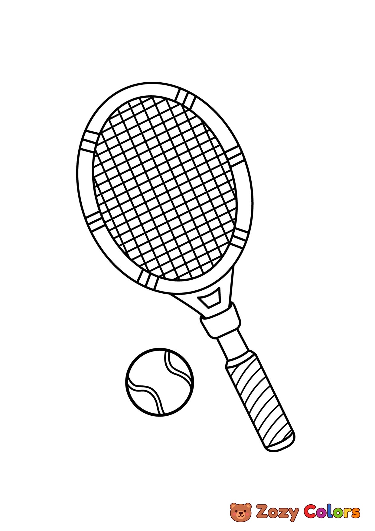 Tennis racket and ball. Coloring page to print or download and color for your kids.