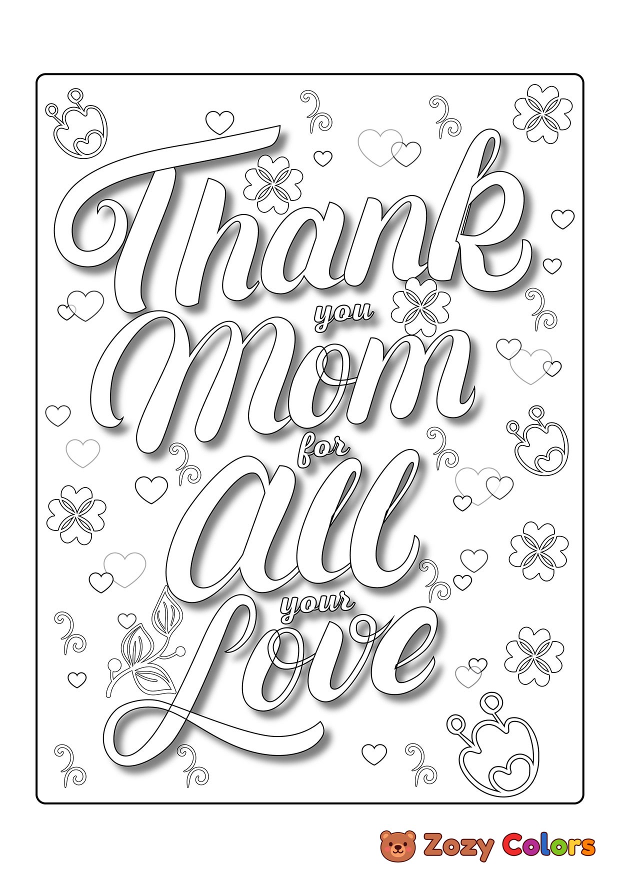 Thank you Mom. Coloring page to print or download and color for your kids.