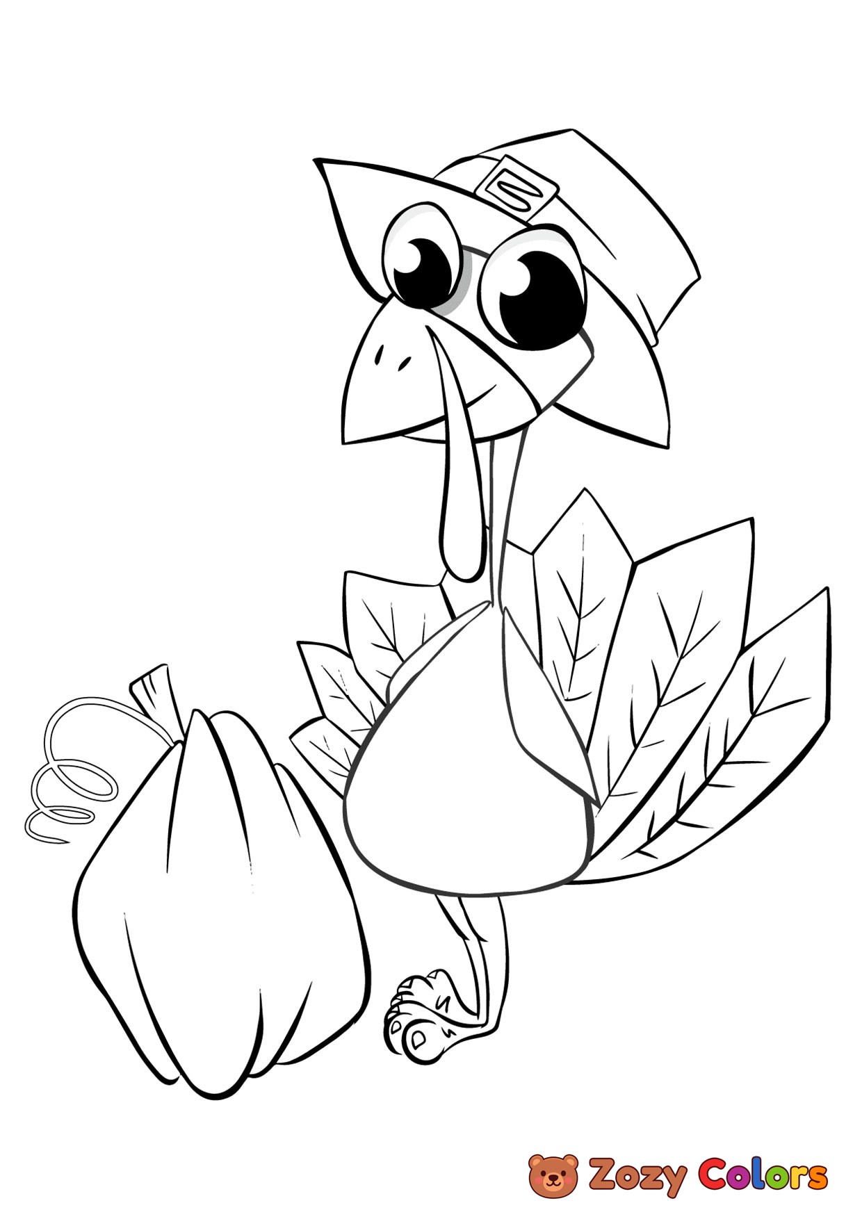 Thanksgiving turkey with a bag. Coloring page to print or download and color for your kids.