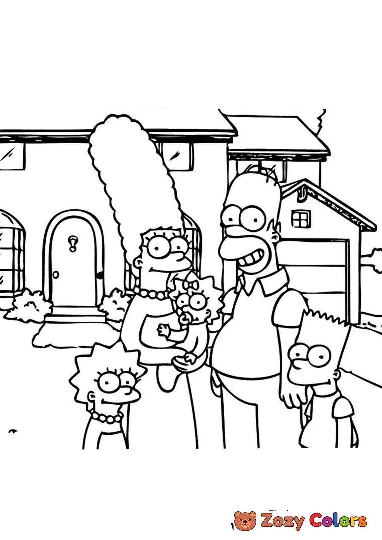 The Simpsons Family in front of the house. Coloring page to print or download and color.