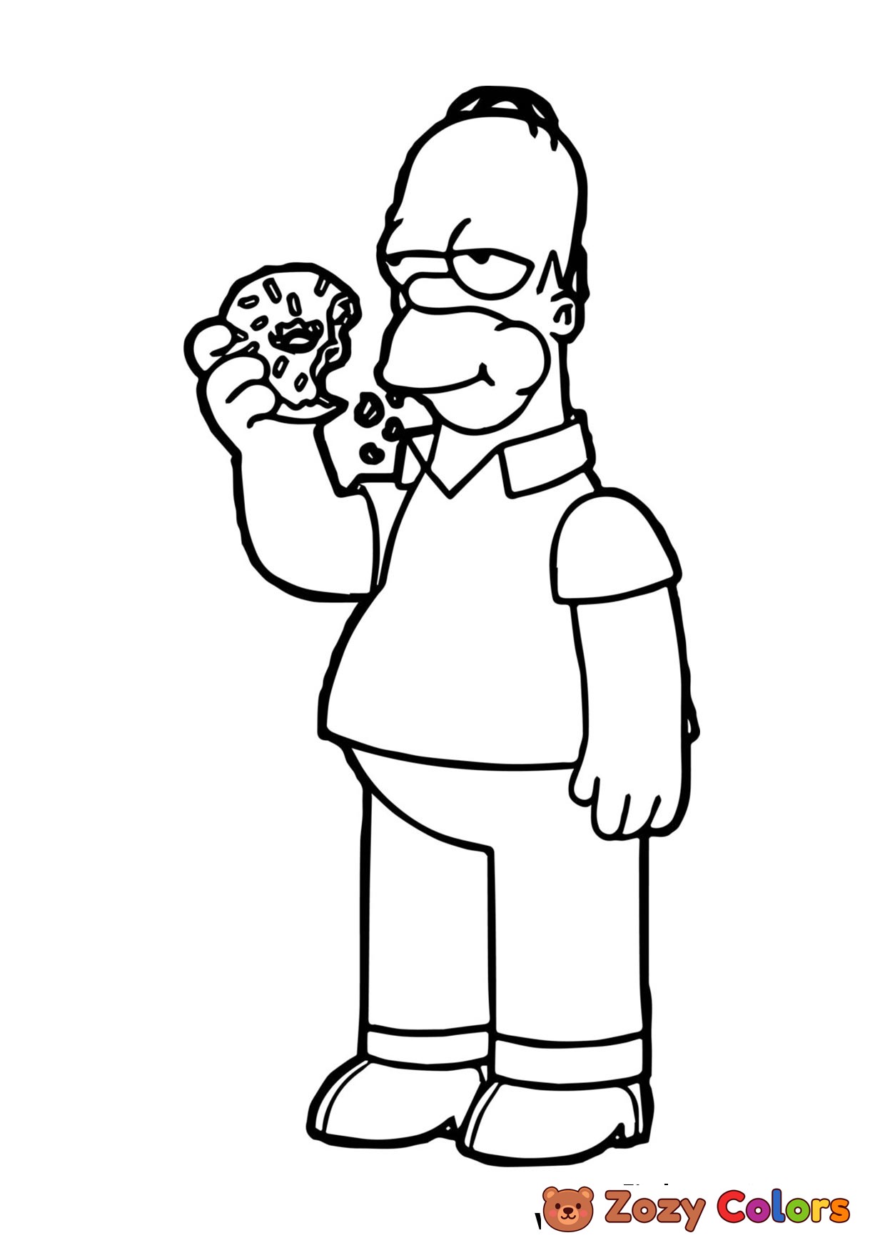 The Simpsons Homer eating a donut. Coloring page to print or download and color.