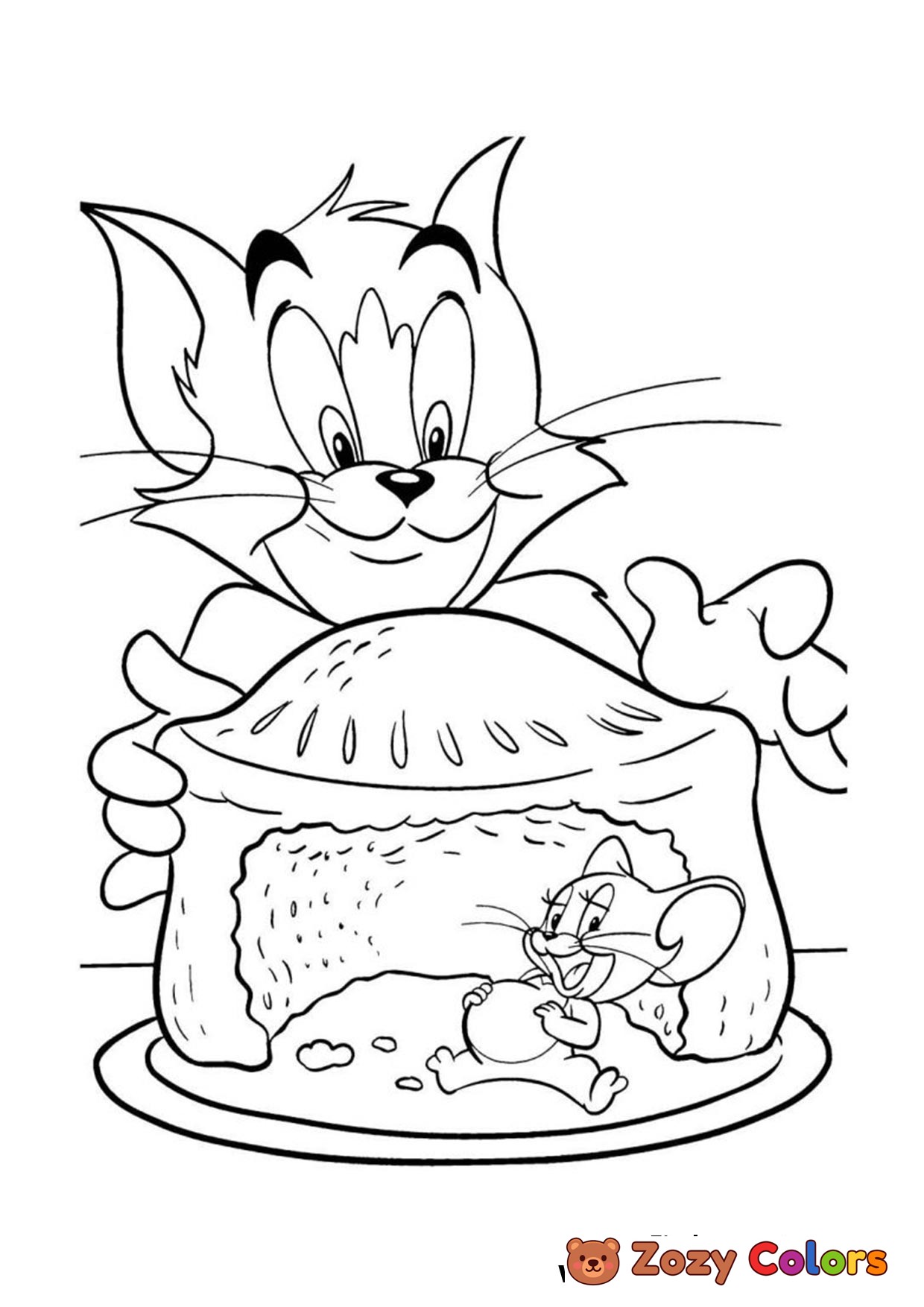 Tom and Jerry eating cake Jerry is full. Coloring page to print or download and color.