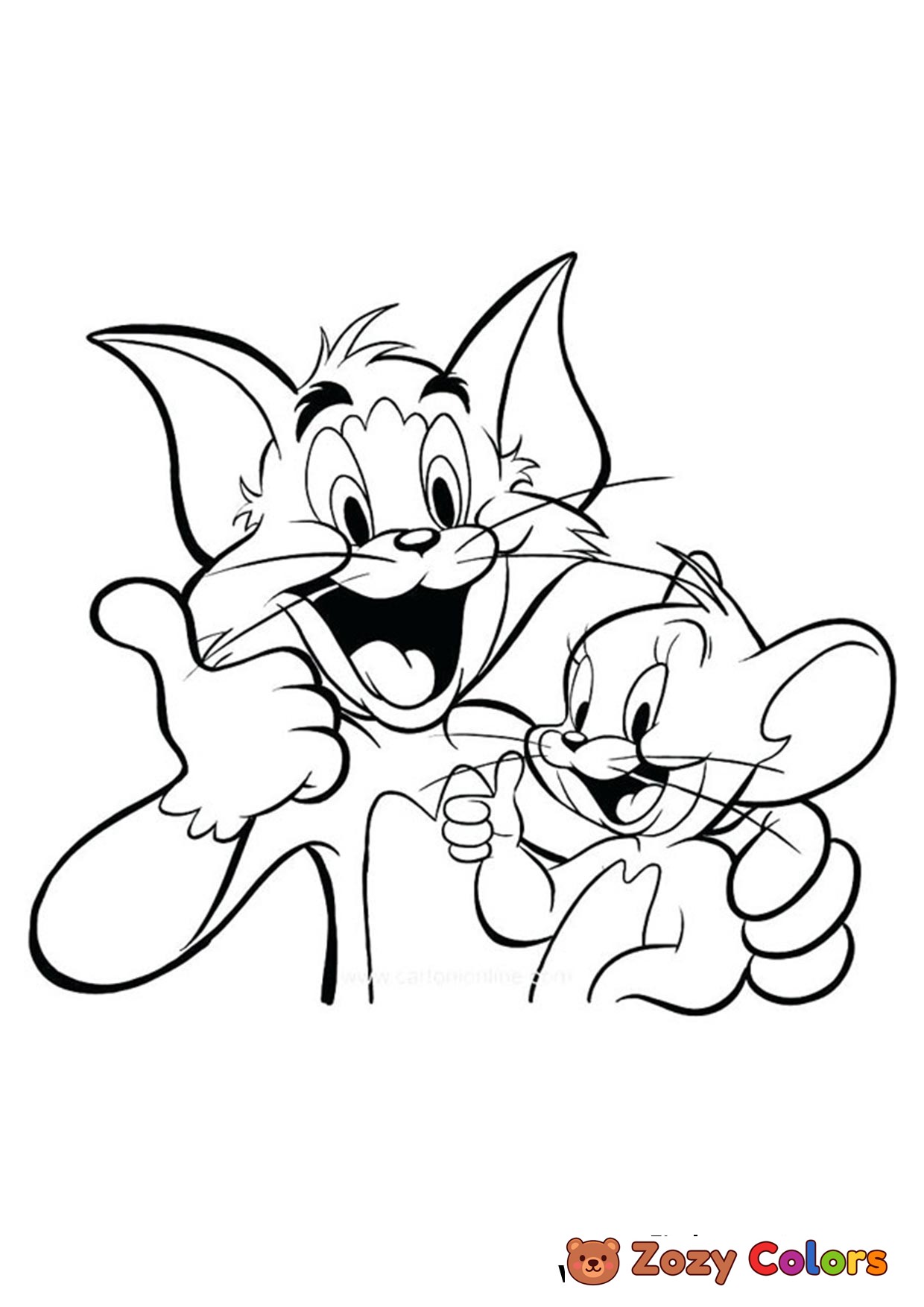 Tom and Jerry smiling. Coloring page to print or download and color.