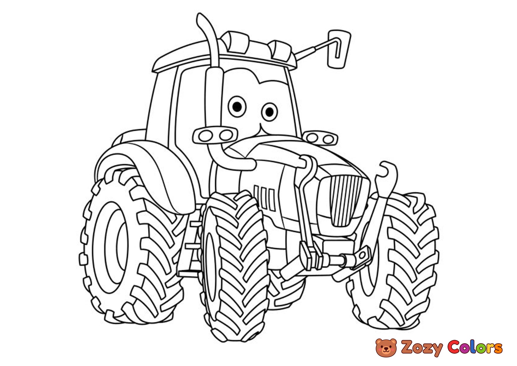 Tractor with eyes. Coloring page to print or download and color for your kids.