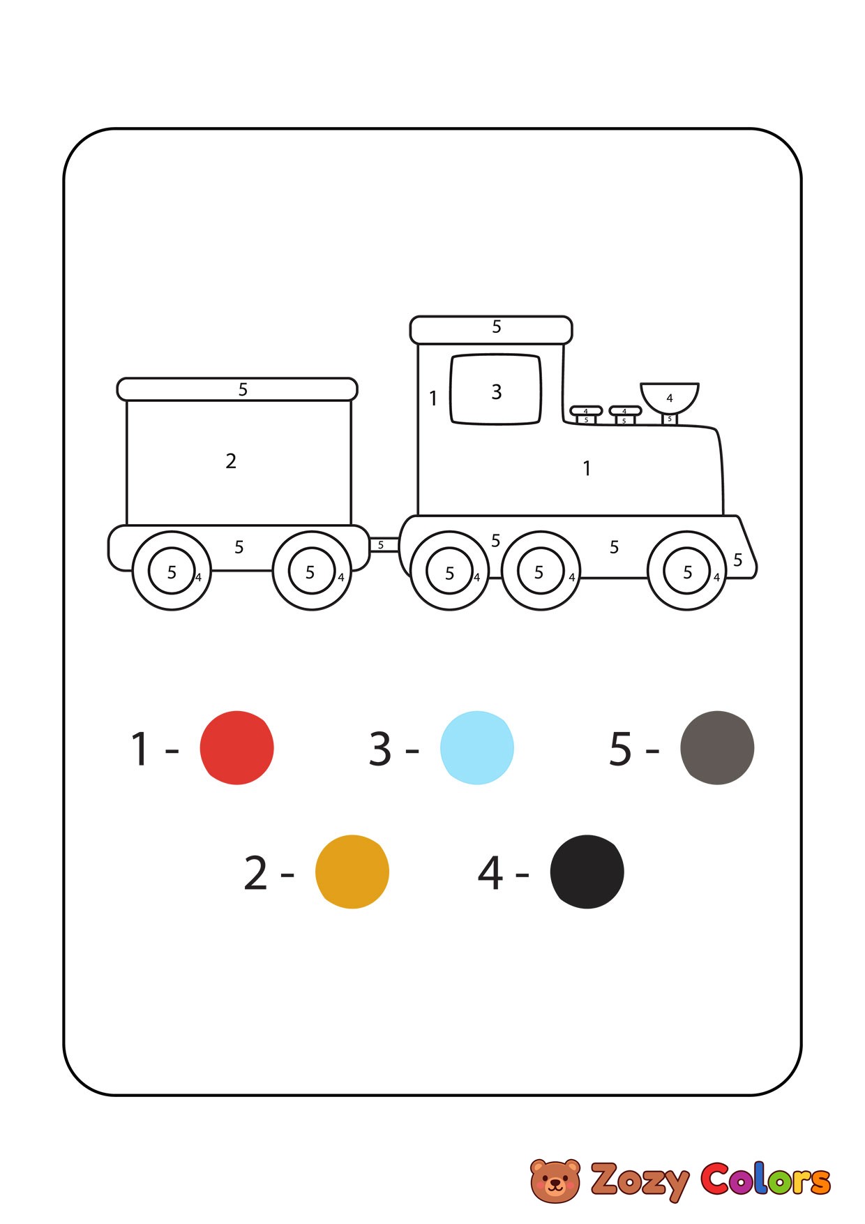 Train color by numbers. Coloring page to print or download and color for your kids.