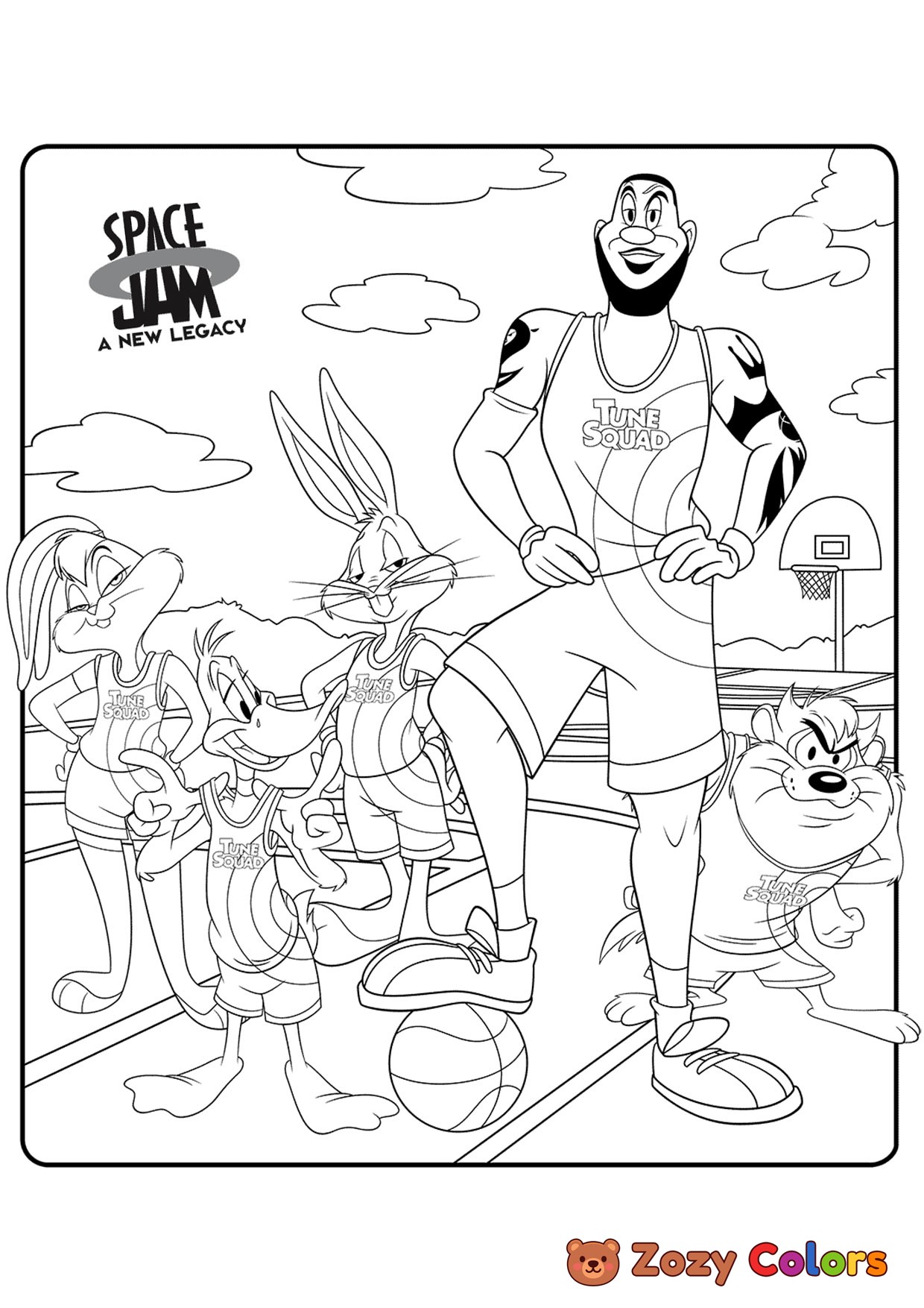 Tune Squad on field. Coloring page to print or download and color for your kids.