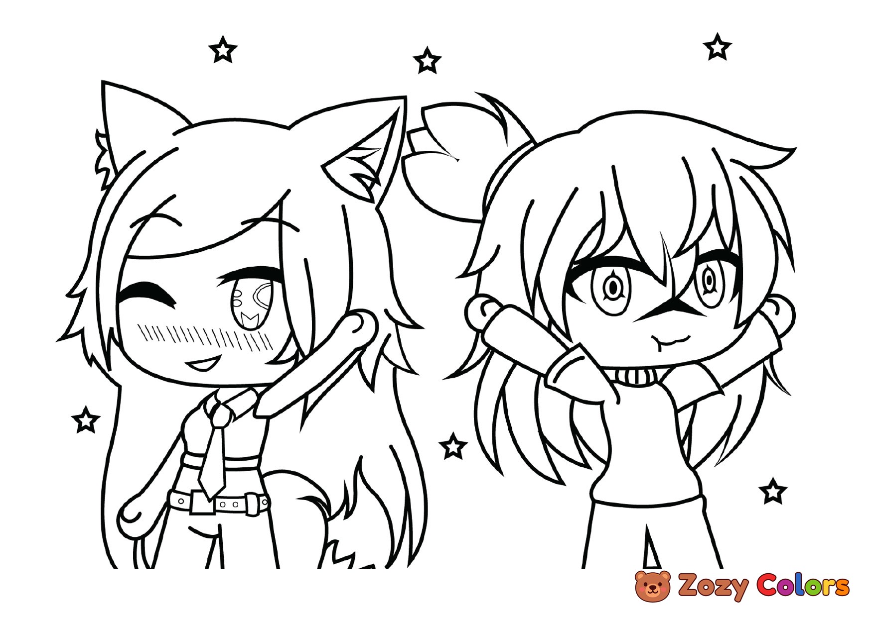 Two girls from Gacha Life. Coloring page to print or download and color for your kids.