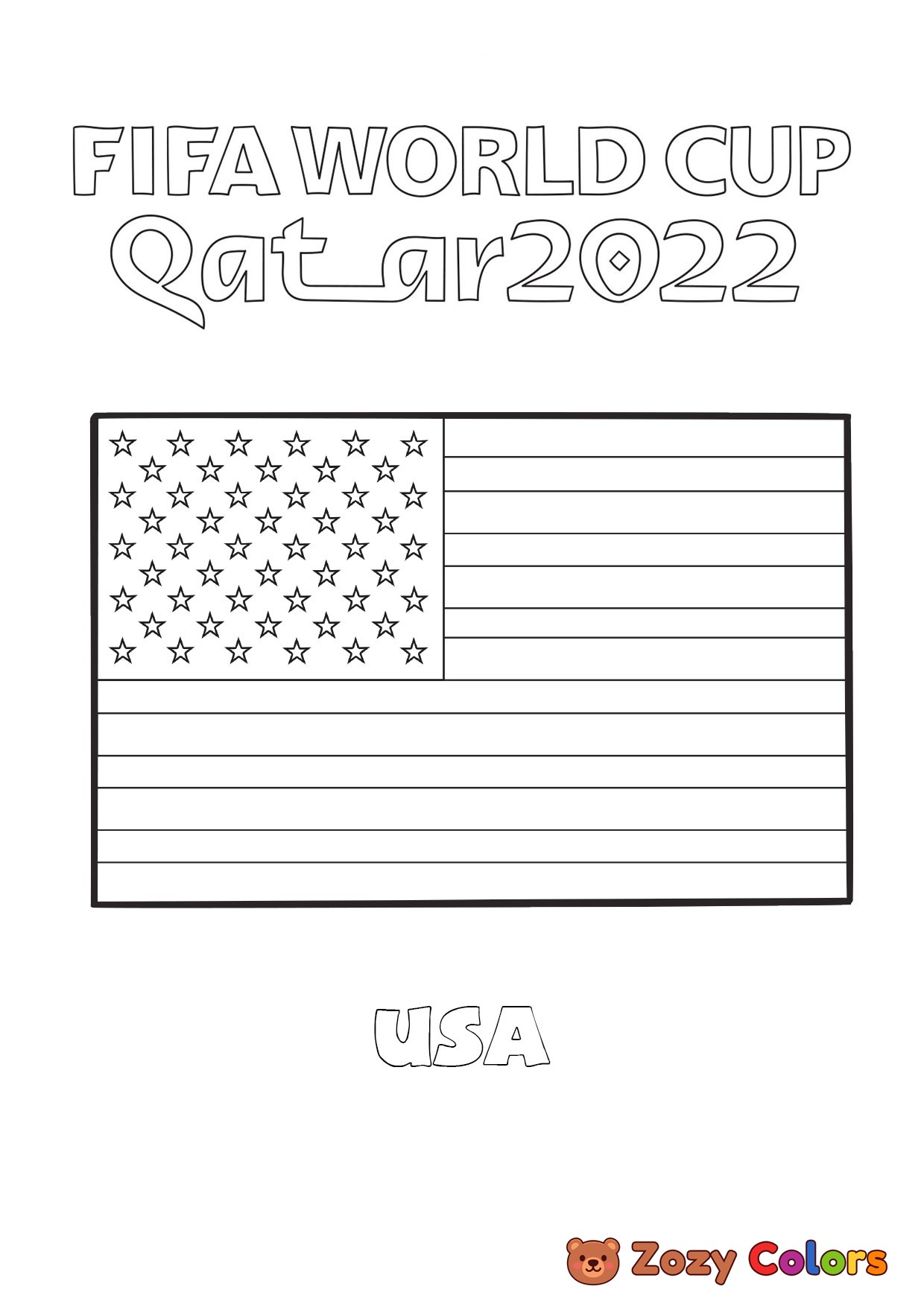 USA World Cup flag. Coloring page to print or download and color for your kids.
