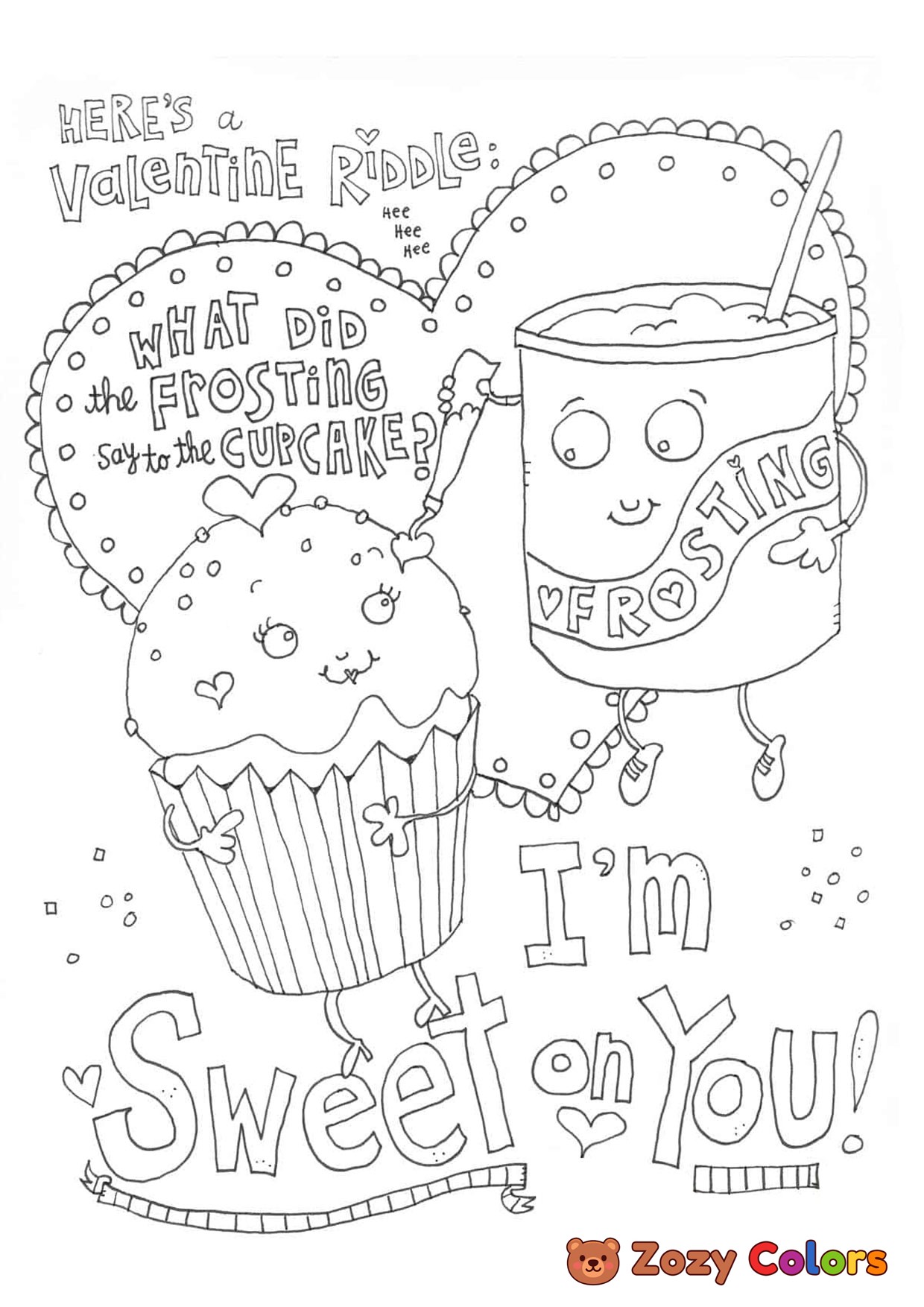 Valentines day riddle. Coloring page to print or download and color for your kids.
