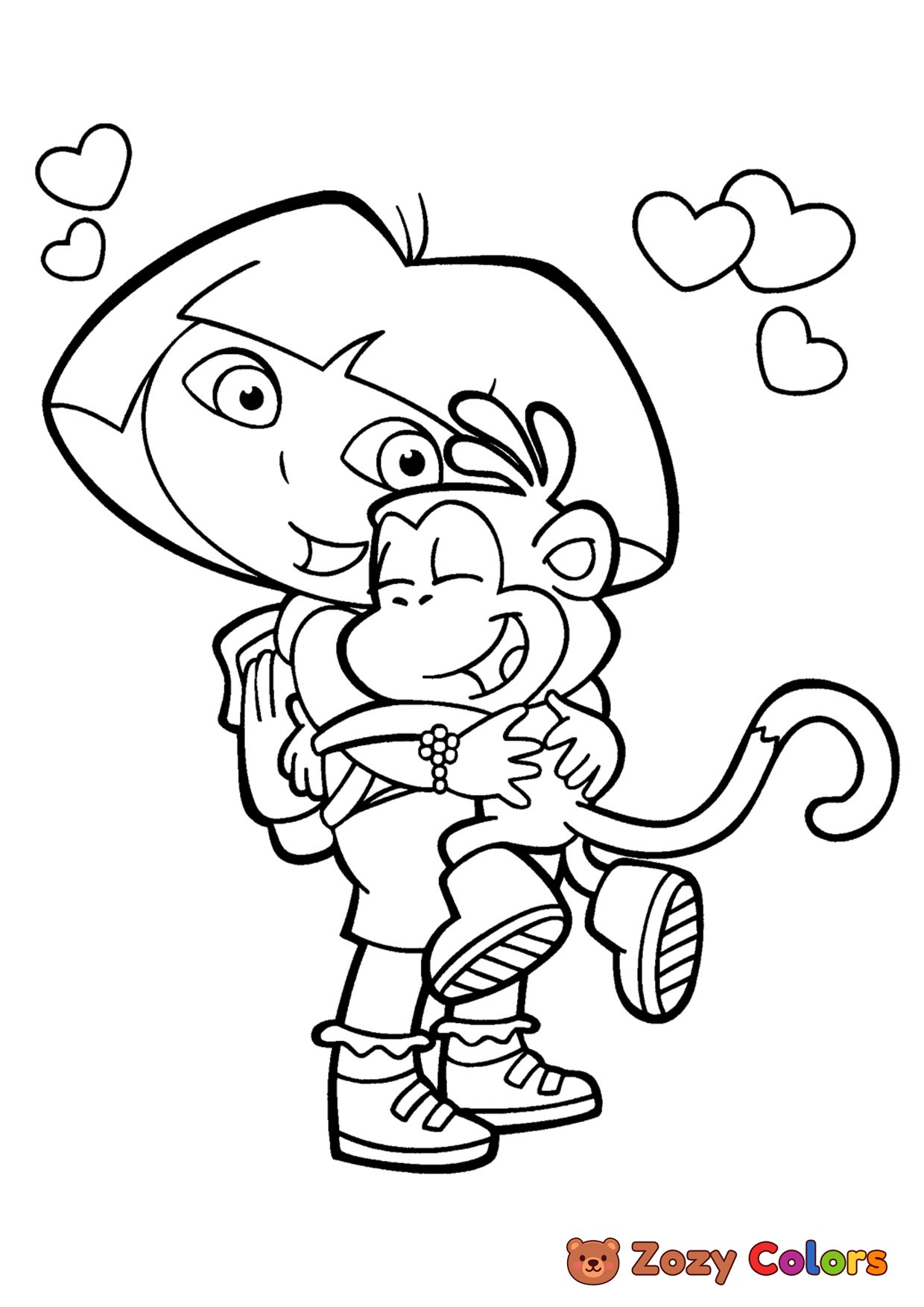 Valentines Dora the explorer. Coloring page to print or download and color for your kids.