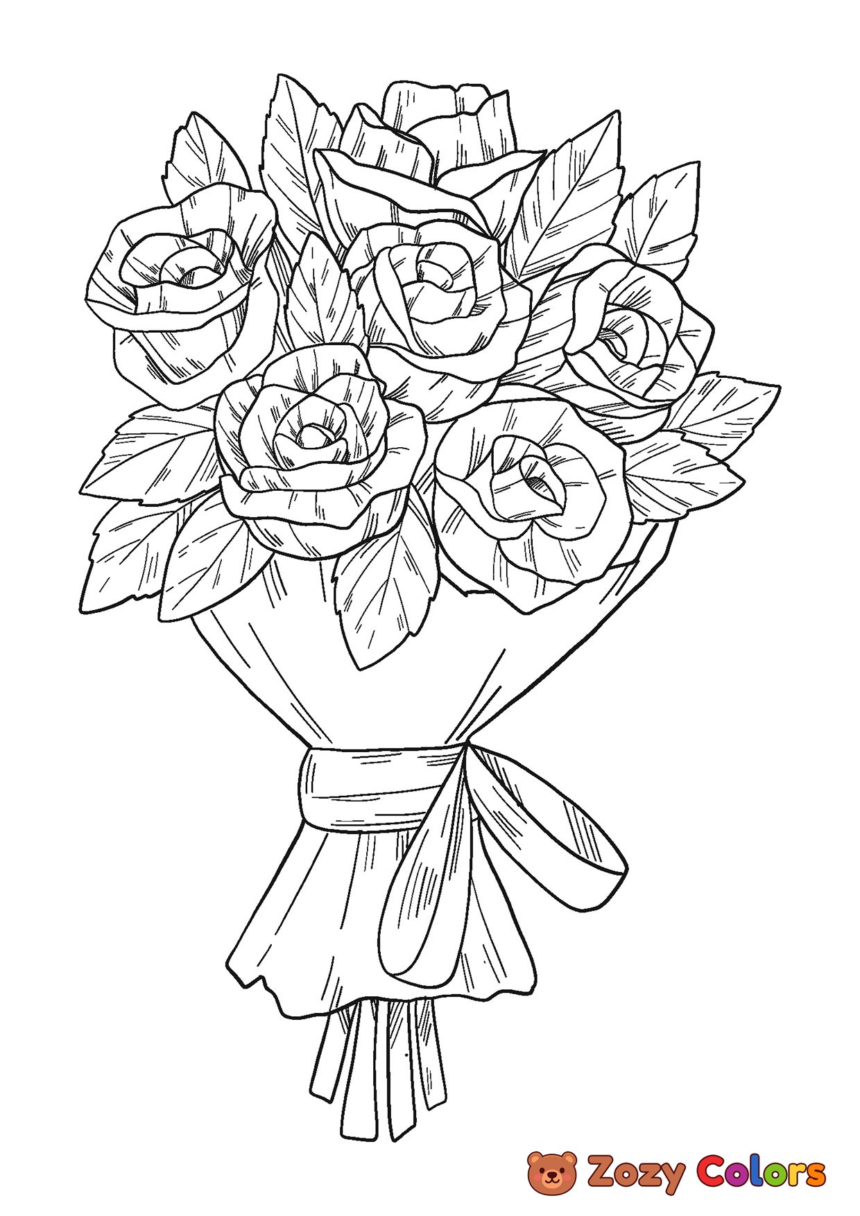 Valentines flowers. Coloring page to print or download and color for your kids.