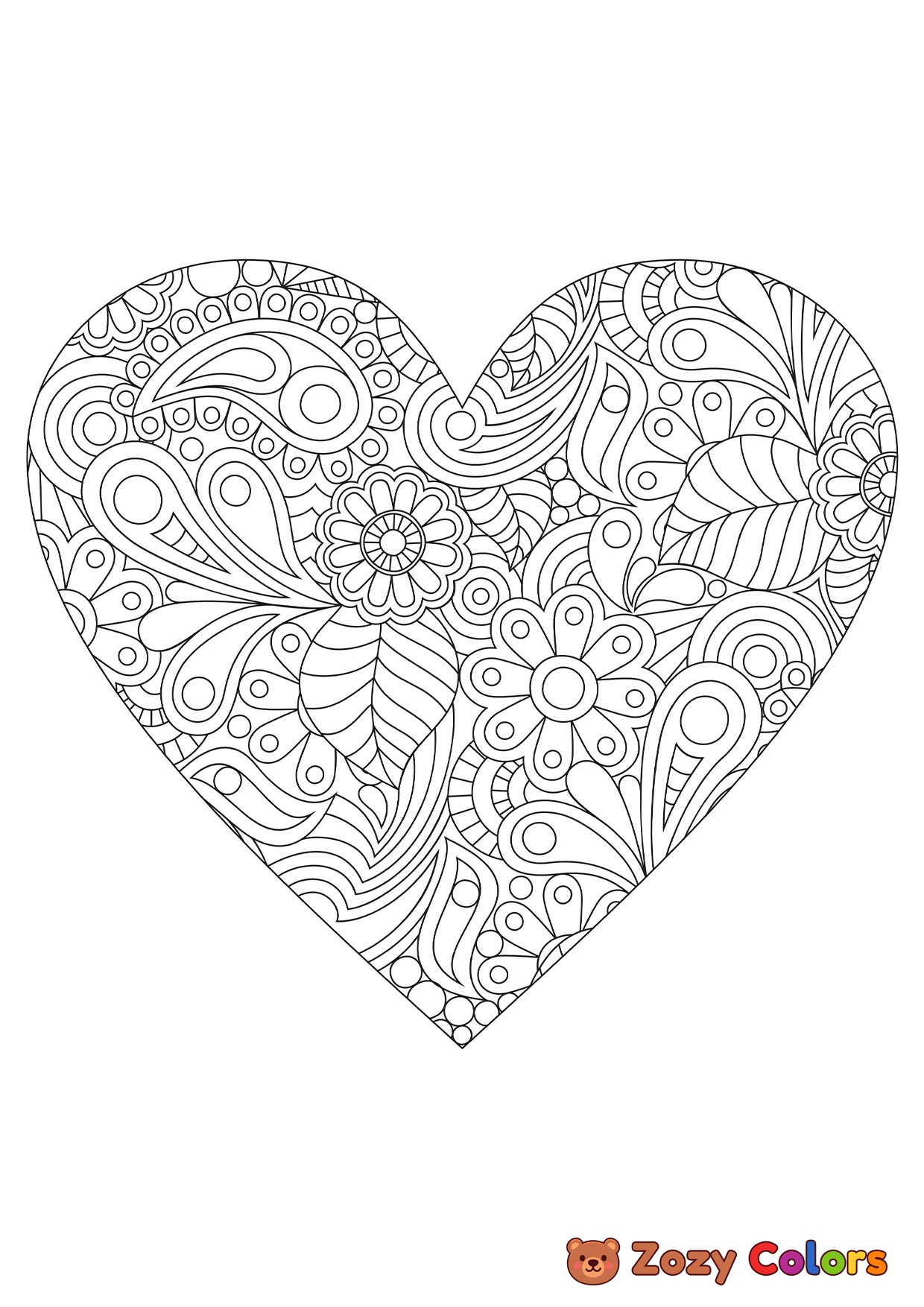 Valentines nature hearth mandala. Coloring page to print or download and color for your kids.