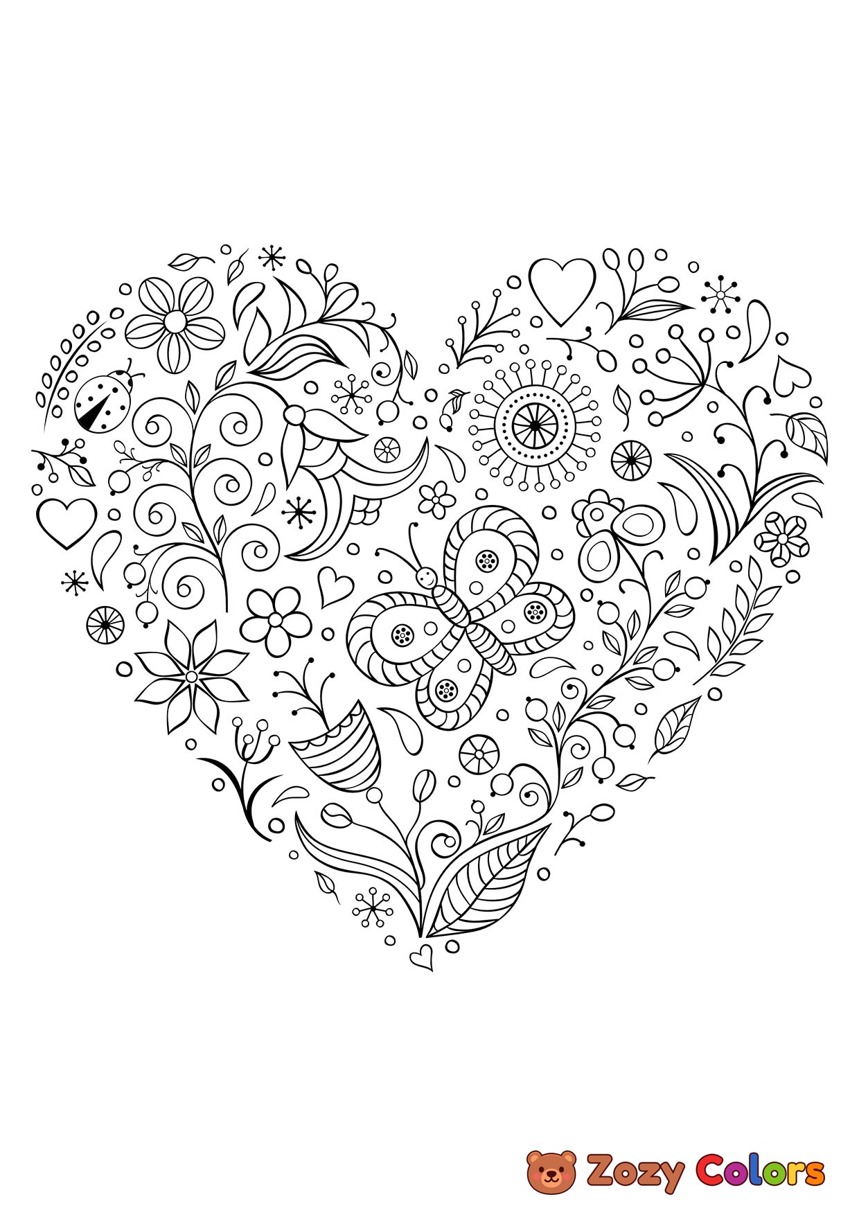Valentines theme mandala. Coloring page to print or download and color for your kids.