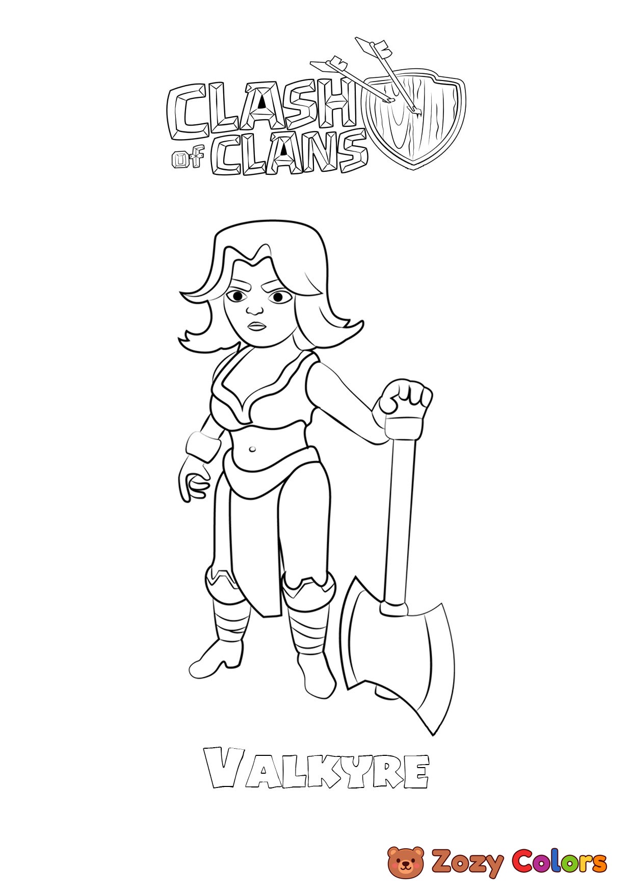 Valkyre from Clash of Clans. Coloring page to print or download and color for your kids.