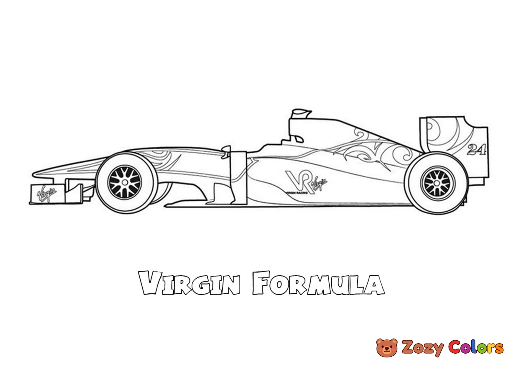 Virgin Formula 1 car. Coloring page to print or download and color for your kids.