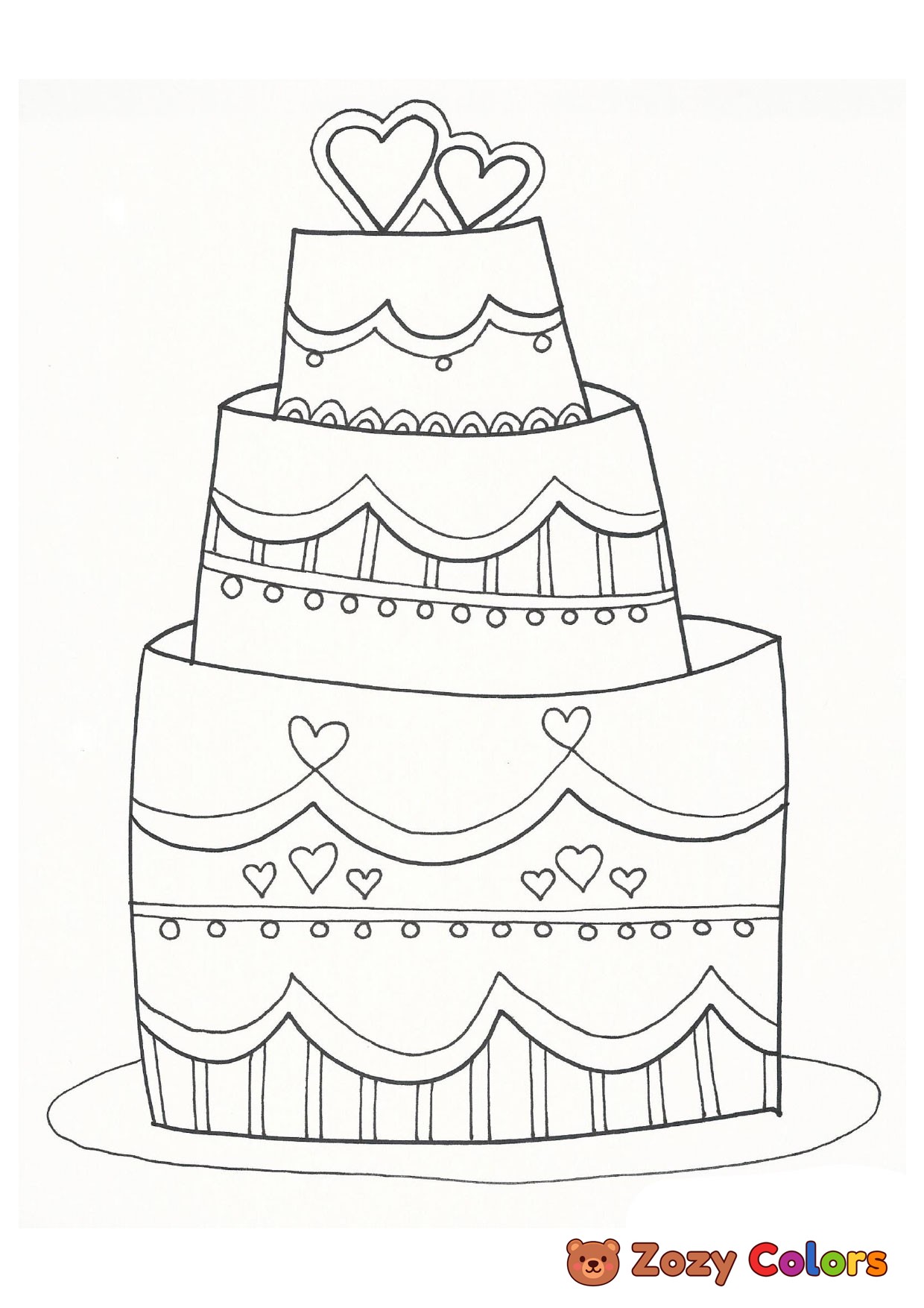 Wedding cake. Coloring page to print or download and color for your kids.