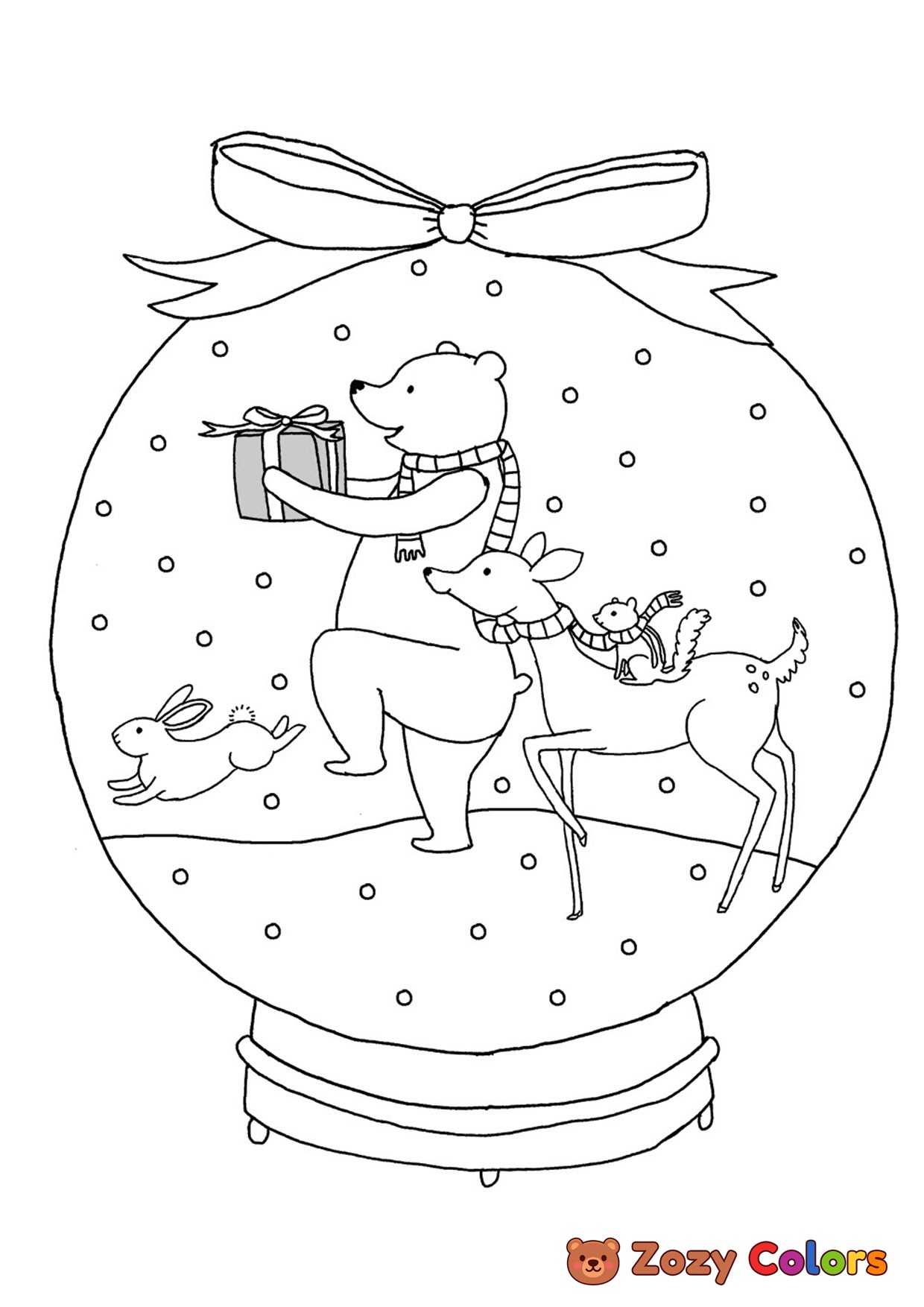 Winter animals in snow globe. Coloring page to print or download and color for your kids.