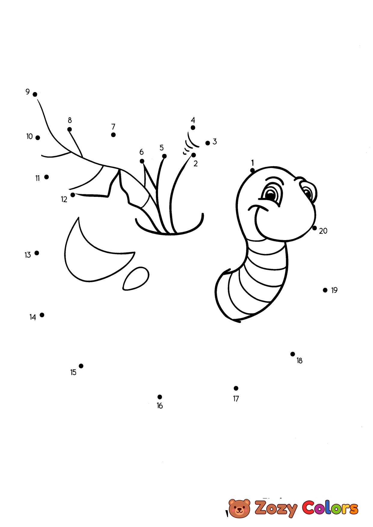 Worm dot the dots - Free Dot the dots worksheets. Free and easy print for your kids.