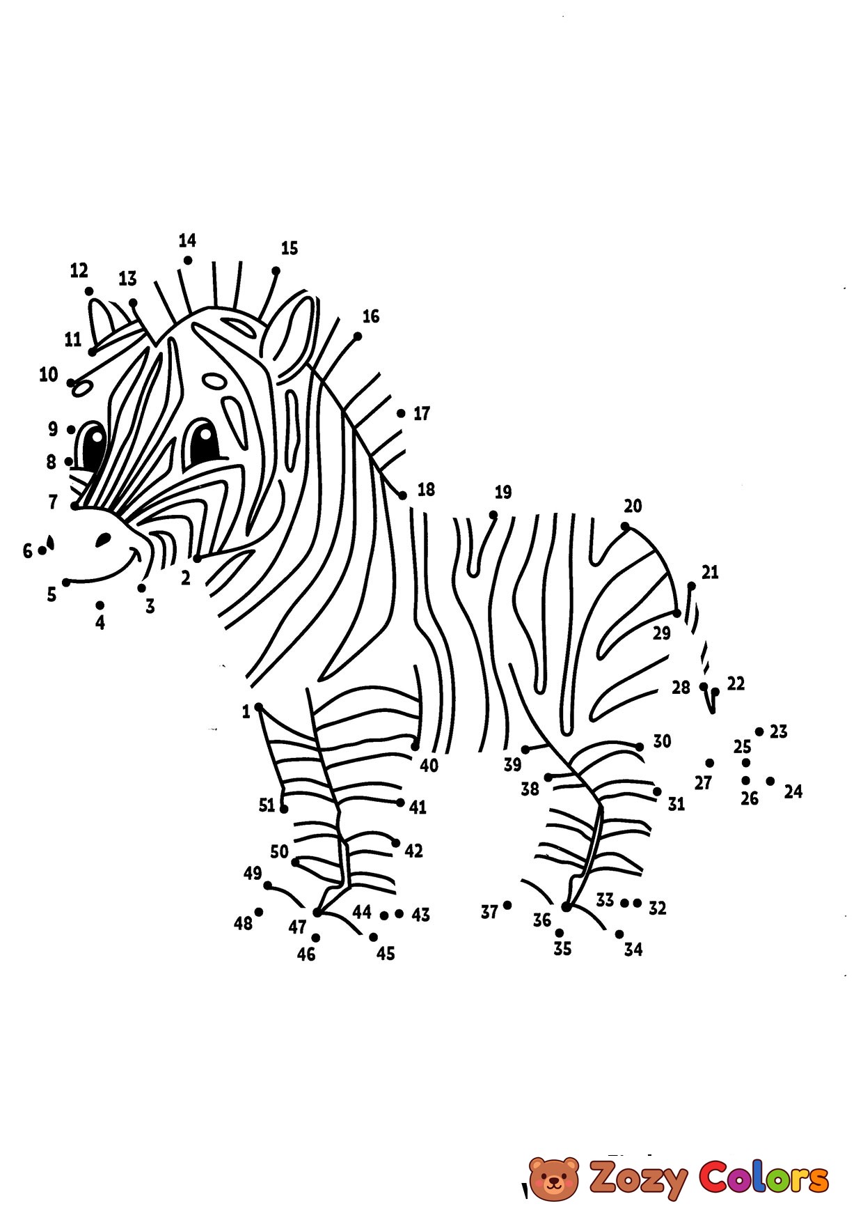 Zebra smiling - Free Dot the dots worksheets. Print, connect and color for kids.
